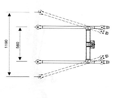 Emelőkar végének távolsága a függőleges oszloptól: 75-94cm (íves mozgás közben változik)