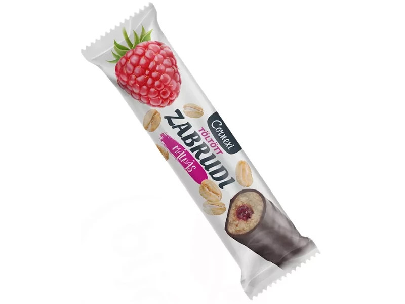 Összetevők: zabpehely 34%, kakaós bevonómassza 17% [cukor, teljes mértékben hidrogénezett növényi zsír (pálmamag), zsírszegény kakaópor 15%, emulgeálószerek: lecitinek és poliglicerin-poliricinoleát; aroma], málnás töltelék 14% [cukor, fruktóz-glükózszörp, alma püré, málna püré 12%, zselésítőanyag: pektinek; étkezési sav: citromsav; feketerépalé koncentrátum, aroma, tartósítószer: kálium-szorbát], glükózszirup, fruktóz-glükózszörp, növényi zsír (pálma), zabpehelyliszt, nedvesítőszer: glicerin; maltodextrin, emulgeálószer: lecitnek (szója); aromák, étkezési só, étkezési sav: citromsav; tartósítószer: kálium-szorbát.