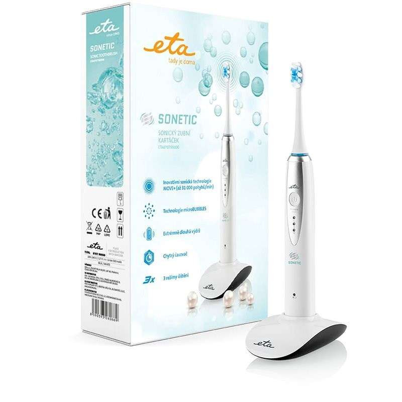 Az ETA SONETIC szónikus fogkefe ideális eszköz a fogaid mindennapos ápolásához. Alkalmas még az olyan érzékeny fogakra is, amelyeket csak odafigyeléssel és nagy gondossággal lehet megtisztítani. A fogkefe segít a fogászati problémák megoldásában illetve a kialakulásának megelőzésében is. Megbízhatóan szabadul meg a lepedéktől a fogakon, így a fogaid szép fényesek lesznek. Nem feledkezhetünk meg arról a tényről sem, hogy ez a fogkefe alaposabban tisztítja meg a fogközi területeket, mint egy hagyományos fogkefe.