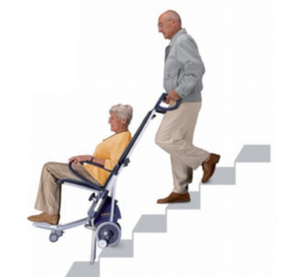 A lépcsőnjáró segítségével a segítő személy önállóan képes a beteget a lépcsőn le-, vagy fel vinni. A feltüntetett termék segítségével a székre ültetett személy transzportálható.