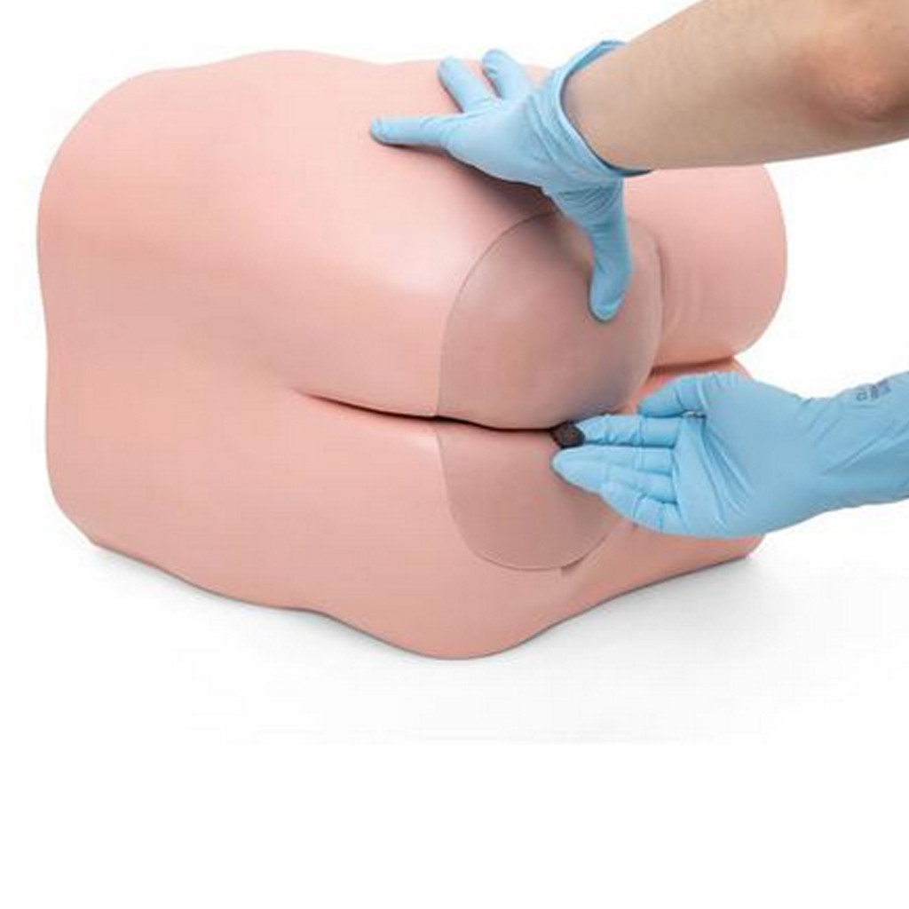 A fenék felső része puha és rugalmas, hogy élethűbb legyen; a gyakornoknak fel kell emelni ahhoz, hogy hozzáférjen a végbélnyíláshoz